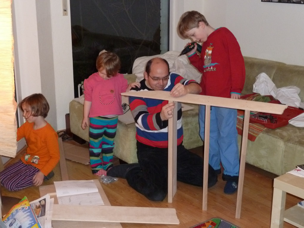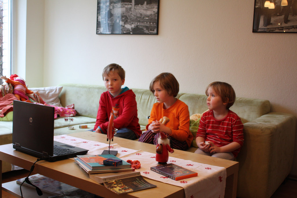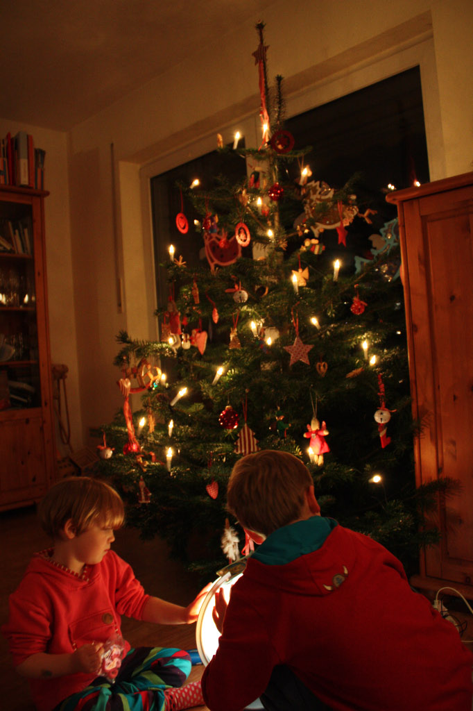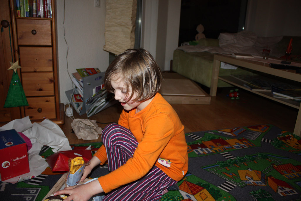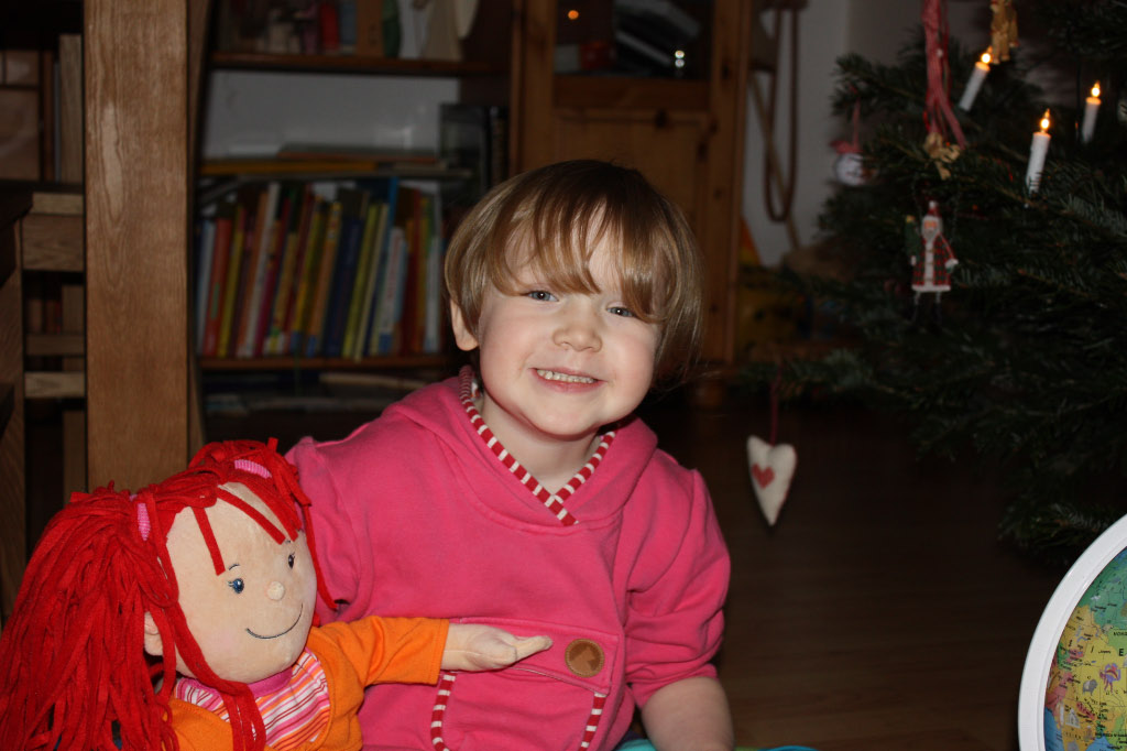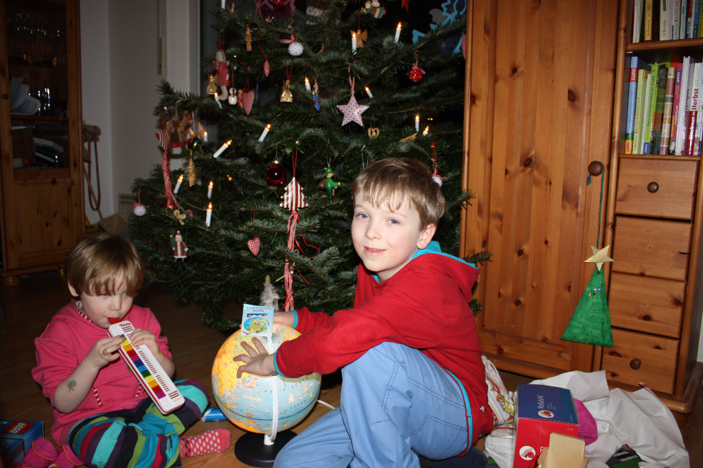Unser 24.12. war in diesem Jahr wieder angenehm entspannt – was besonders nach einer Nacht Magen-Darm-Infekt bei Matilda gut tat. Alle Kinder wurden reich beschenkt – neben dem gemeinsamen Kiosk gab es das erwünschte Zubehör und freute sehr. Dass dann darüberhinaus viele Wünsche erfüllt wurden, hatten die Kinder nicht erwartet und staunten überrascht auf Globus, Bügelperlen, Puppenschrank und einer Schwester für Matildas Baba.